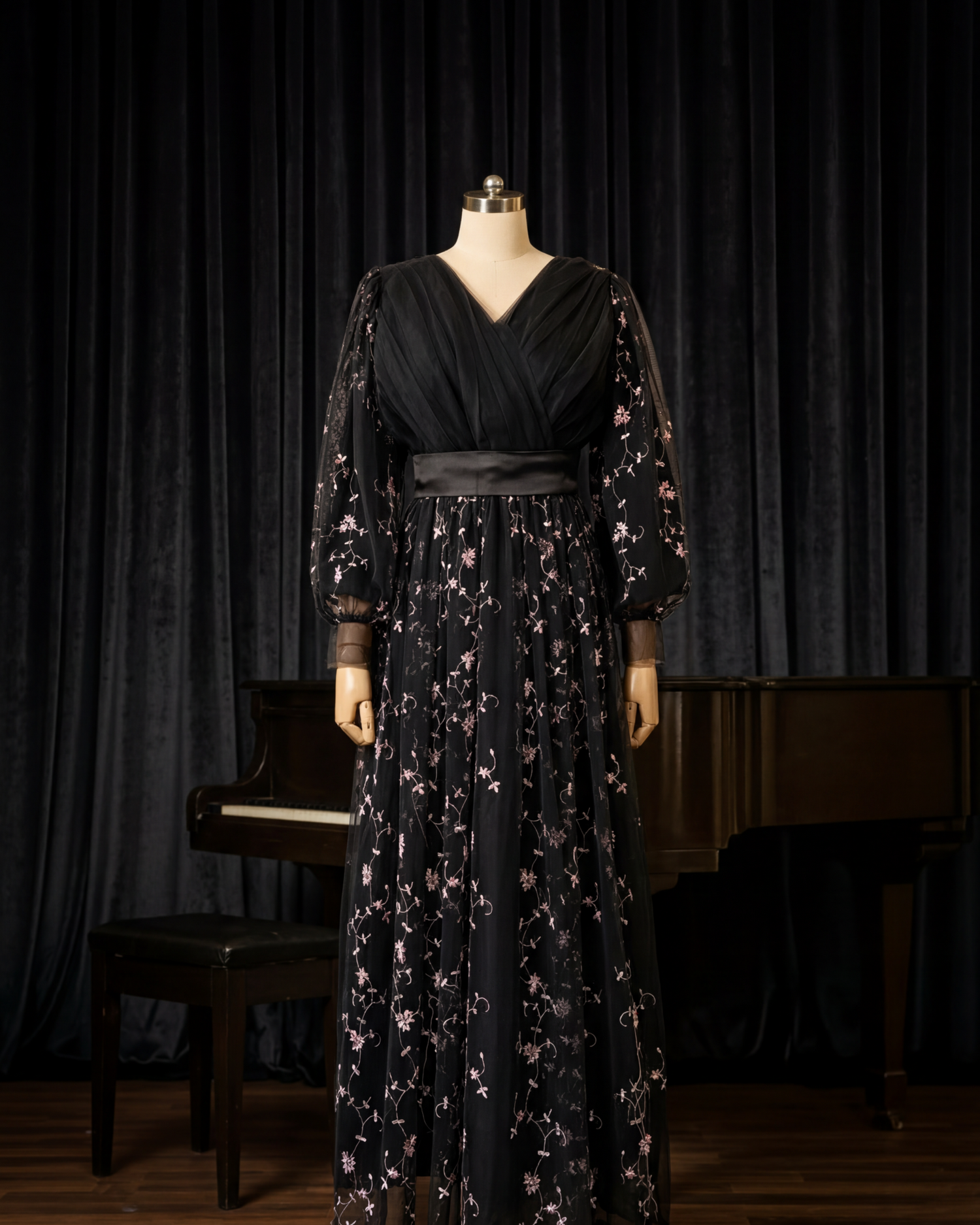 Black Serene Long Net Dress